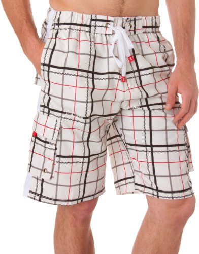 LA88113B - Mens Trendy Plaid Print Skate Surf Board Short / Swim Trunks - Off white/Large Feature